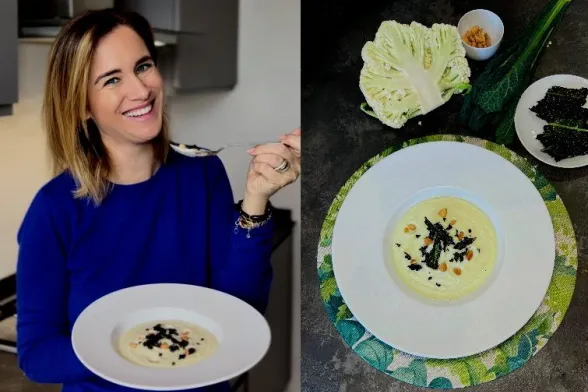 Immagine La video-ricetta Crema di cavolfiore con chips di cavolo nero e mandorle tostate, per mangiare sano e con gusto 10/02/2023