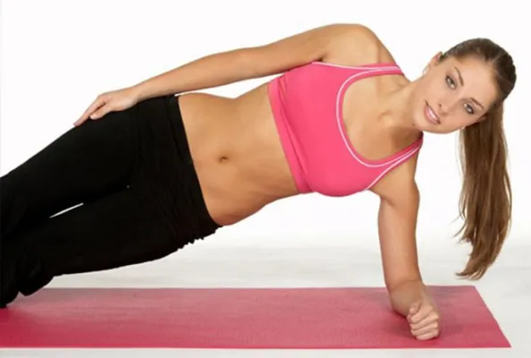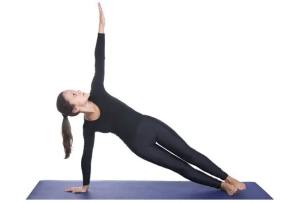 (www.melarossa.it) Side plank: Steso su un fianco alza il corpo da terra appoggiandoti sul braccio (non utilizzare la mano come punto d?appoggio). L?altro braccio è steso dritto verso l'alto. I piedi sono appoggiati uno sull?altro, le gambe tese. Idealmente, dovresti riuscire a creare una forma a ? T? con il tuo corpo. Tieniti in posizione per circa 30?. Poi ripeti sull?altro lato. Copyright: Shutterstock.com