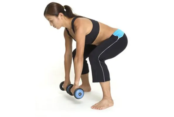 (www.melarossa.it) Stacco: Assumi una posizione tipo squat, con le gambe allargate all?altezza delle spalle, le ginocchia leggermente piegate. Fai attenzione a non spostare le ginocchia in avanti. Utilizzando un kettleball o dei manubri, alza i pesi di fronte a te con le braccia allungate e riportali lentamente verso il basso. Ripeti l?esercizio per 1-3 minuti. Copyright: Shutterstock.com