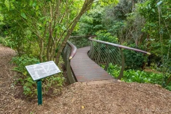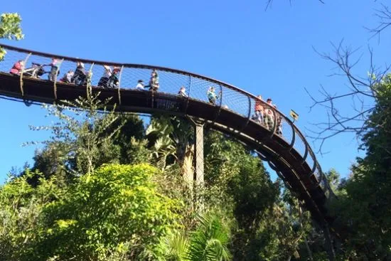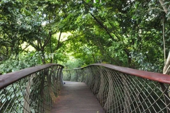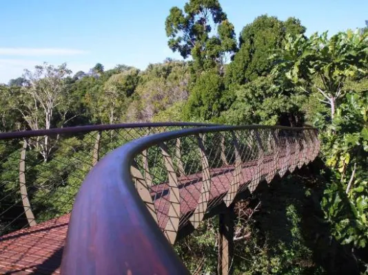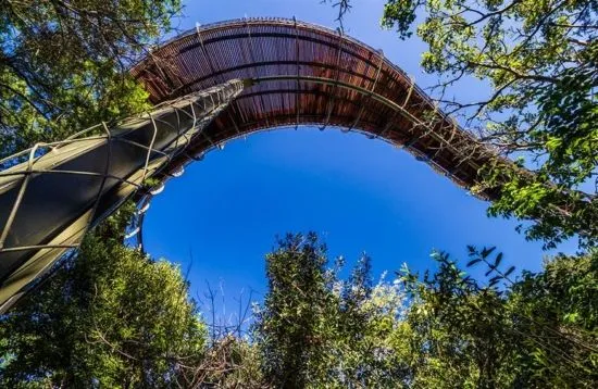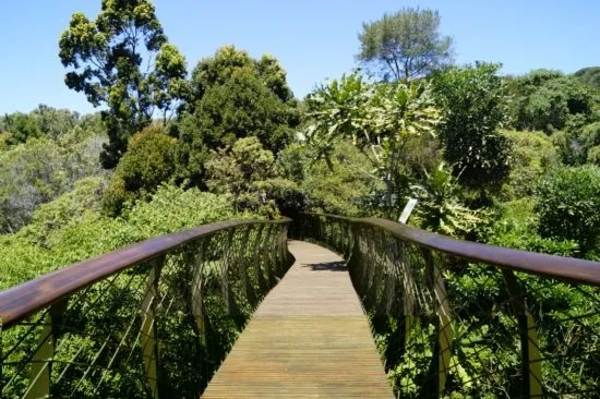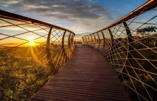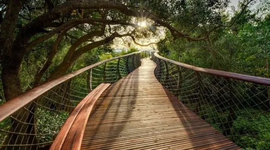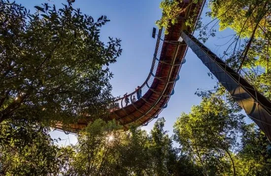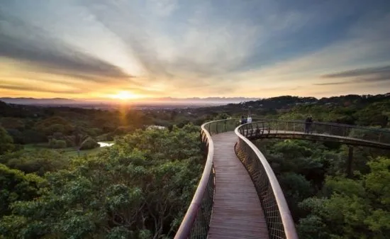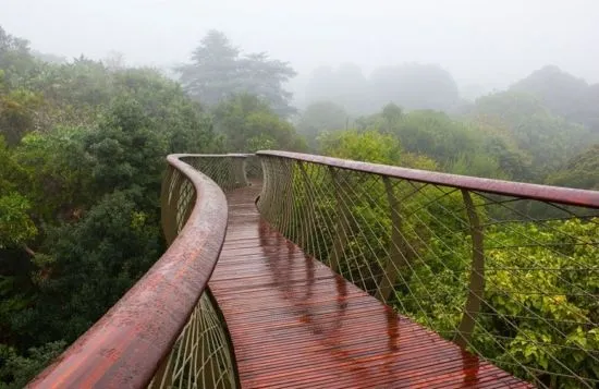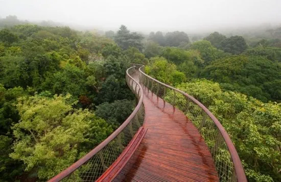L'insolito percorso aereo si chiama Centenary Tree Canopy Walkway, ma e' gia' stato informalmente soprannominato Boomslang (termine che indica un tipo di serpente arboreo). Il ponte, lungo 130 metri e sospeso ad un'altezza variabile che arriva a 12 metri dal suolo, e' stato costruito con una tecnica che imita le vertebre snodate dei serpenti, la passerella in acciaio e legno ne imita anche il movimento, ondeggiando sotto i passi dei visitatori. La prima parte del percorso si sviluppa all'ombra delle chiome, mentre procedendo ancora piu' avanti si supera il tetto sbucando sopra gli stessi alberi. Lungo il percorso ci sono anche delle panchine, una nell'ombra degli alberi e un'altra nel punto in cui il panorama si apre sulla citta' e le montagne. La passeggiata sulla foresta si trova nella parte alta dei giardini Kirstenbosch, in Sud Africa.