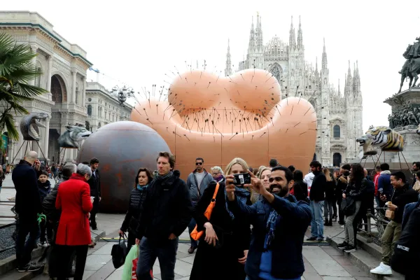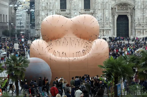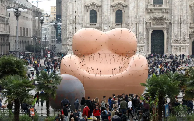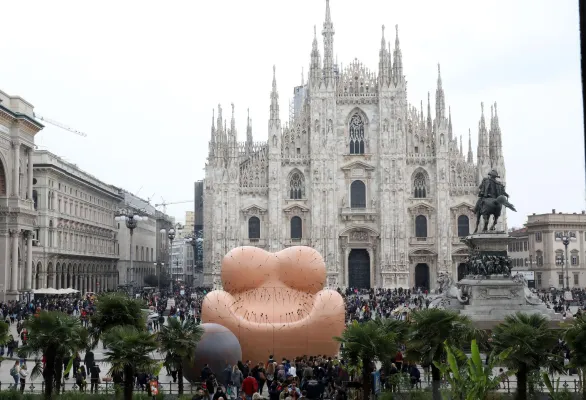 L'opera è ispirata alla storica poltrona Up5&6 realizzata da Pesce 50 anni fa. E Giuseppe Sala, sindaco del capoluogo lmbardo, ha così commentato: "E' molto contemporanea nonostante sia di 50 anni fa. È giusto che se ne parli perché ci stupiamo ancora quando succede un femminicidio e, se attraverso questa testimonianza se ne riparla, allora deve andar bene. È giusto rendere onore a Gaetano Pesce. A me non dispiace affatto, mi sembra un messaggio contemporaneo".