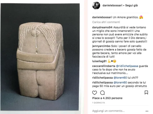 In più a chiudere la questione ha pubblicato sul suo account Instagram l'immagine di una scultura in cui un lui e una lei si baciano con la scritta: "Un amore granitico". E filippa? Anche lei in una "stories" di Instragram ha detto la sua: "Nel video la si vede abbracciata a Daniele. I due sfogliano il giornale con le foto rubate al marito e lei dice: "noi siamo molto tranquilli. Spero che lo siate anche voi".