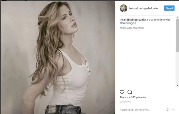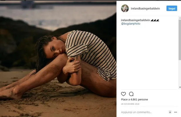 In uno degli ultimi post, sul suo seguitissimo profilo Instagram, ha mostrato l'espressione del padre di fronte a un suo manifesto pubblicitario. Alec che come descrive Ireland nella didascalia non comprende appieno il lavoro di modella della figlia, cerca di imitarla con una smorfia esilarante, ma orgoglioso vuole essere immortalato sotto il cartellone che ritrae della sua bambina.