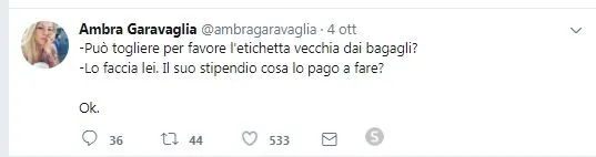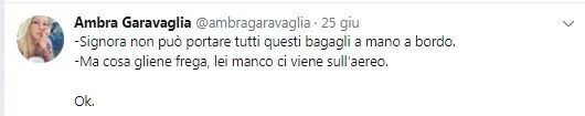 E'diventata un vero fenomeno fenomeno social, l' hostess di terra Ambra Garavaglia che a colpi di tweet esilaranti racconta la quotidianità un po' folle al desk del check dell'aeroporto di Malpensa.