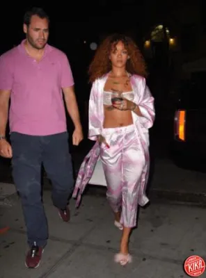 - New York è una città che non dorme mai. Lo sa bene Rihanna che è uscita all'alba dagli studi di registrazione dopo aver trascorso la notte a lavorare al nuovo album, anticipato dal singolo Bitch Better Have My MoneyLa cantante delle isole Barbados pensando, forse, di non incontrare paparazzi si è presentata davanti agli obiettivi indossando una vestaglia rosa, in pendant con i morbidi pantaloni e con il reggiseno a balconcino, e tenendo in mano un calice di vino rosso.L'interprete di Unapologetic non è la prima star ad apparire in pigiama davanti ai fotografi, prima di lei, infatti, anche Alessandra Ambrosio, Julia Roberts e Nicollette Sheridan, tra le altre, sono state sorprese mentre indossavano un abbigliamento più adatto alla camera da letto.