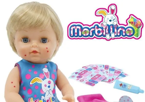 Arriva Cicciobello Morbillino: la nuova creazione della Giochi Preziosi è un bambolotto con il morbillo che, però, può essere curato cancellando i puntini rossi con un'apposita salviettina, una cremina e dei cerottini.