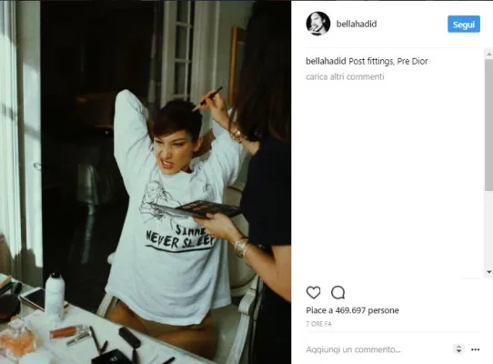 La top model Bella Hadid in questi giorni ha soggiornato a Venezia per uno shooting fotografico per Bulgari, di cui è testimonial dal marzo 2017. Nel suo profilo Instagram racconta con le immagini la su esperienza nel capoluogo veneto ma la foto che più ha incantato i fan è quella scattata in albergo dove appare nuda con lo sguardo malizioso. Foto Instagram