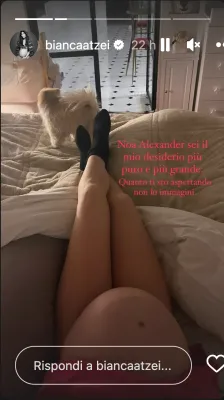 Bianca appare bellissima, ad occhi chiusi nello scatto insieme al compagno. Per lui il piccolo Noa è il secondo figlio. A casa infatti ad attenderlo c’è il fratello maggiore Gabriele, 14 anni, nato da una precedente relazione.