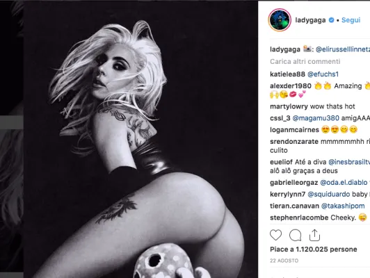 Stefani Joanne Angelina Germanotta, questo il vero nome della cantante e attrice nata a New York 32 anni fa da una famiglia di origini siciliane, intanto ha festeggiato i suoi primi 10 anni di carriera discografica (il suo primo disco “The Fame” è stato pubblicato nell'agosto del 2008) con tre foto molto sexy e provocanti, uno shooting in cui si mostra praticamente offerto ai fan sul suo account Instagram.