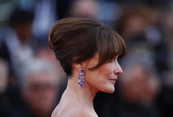 Per la proiezione del film in concorso Les Misérables, opera prima del francese Ladj Ly, hanno sfilato modelle e attrici. Carla Bruni non fa più la modella ma non disdegna il red carpet di Cannes. L’ex première dame è comparsa fasciata in un abito monospalla Celine blu notte con un accenno di strascico.