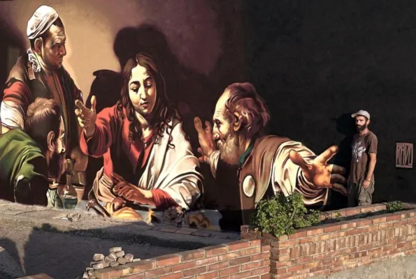 Armato di bomboletta spray e di un sicuro talento, Andrea Ravo Mattoni, street artist e pittore, sta dando nuova vita alle opere del classicismo italiano. Il suo progetto "Recupero del classicismo nel contemporaneo" ha infatti prodotto il quarto capolavoro: la riproduzione della "Cena in Emmaus" del Caravaggio, il cui originale è custodito alla National Gallery di Londra. La versione "street" abbellisce un muro del paese di San Salvatore di Fitalia, in provincia di Messina