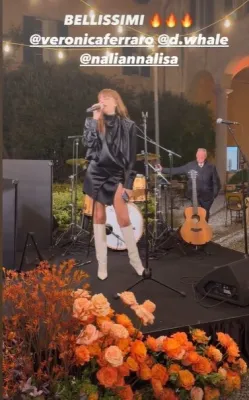 Si sono esibiti per i presenti Tananai, Emma, Annalisa, Dargen D'Amico, Negramaro. Annalisa ha sorpreso tutti cantando al matrimonio del suo ex, Davide Simonetta. L'accompagnamento al pianoforte è stato affidato al marito di Annalisa, Francesco Muglia, creando un inaspettato ma armonioso triangolo artistico. Nonostante la fine della loro relazione, Annalisa e Davide hanno mantenuto buoni rapporti e continuano a collaborare come cantante e produttore. Durante le nozze, hanno eseguito insieme il loro successo "Bellissima", in un duetto che ha suggellato la loro amicizia e collaborazione professionale.