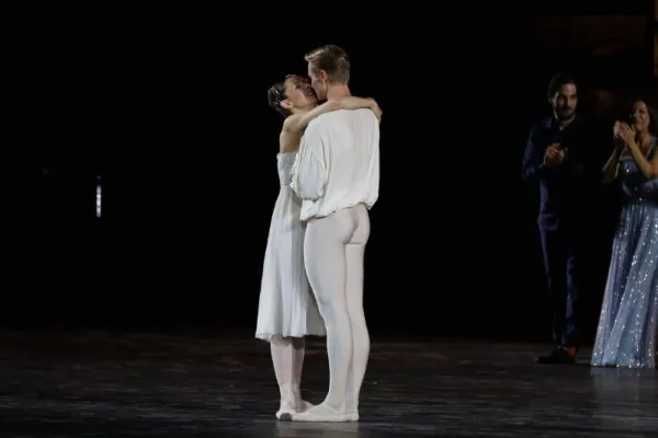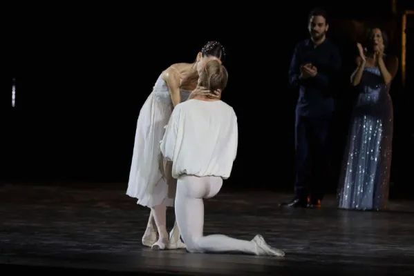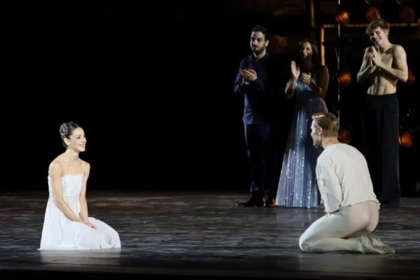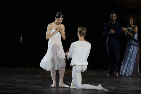 Durante gli applausi finali il primo ballerino Timofej Andrijashenko, che aveva poco prima danzato il duetto di "Romeo e Giulietta" con Nicoletta Manni, si è inginocchiato e le ha chiesto di sposarlo. E la prima ballerina della Scala, sorpresa e felice, gli ha detto sì.
