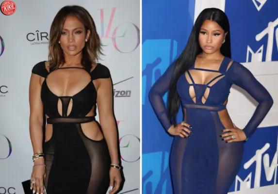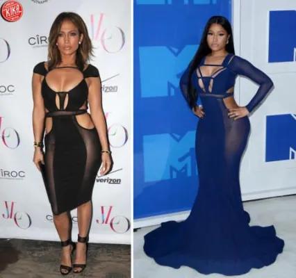 C'è poi chi non si accontenta e sul red carpet sfoggia contemporaneamente sia il cutout sia il vedo non vedo: come ha fatto Nicki Minaj che agli MTV Video Music Awards dell'agosto 2016 ha sfoggiato un lungo abito blu elettrico firmato Bao Tranchi, un modello che segue le forme prorompenti del corpo della dj e cantante, per poi allargarsi ai piedi.