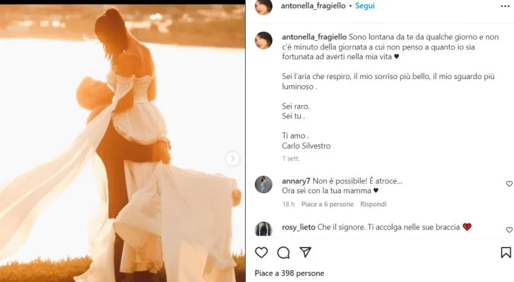 L'ultimo messaggio che ha lasciato su Fb, dedicato al marito Carlo. "Sono lontana da te da qualche giorno e non c'è minuto della giornata in cui non penso quanto io sia fortunata ad averti nella mia vita. Sei l'aria che respiro, il mio sorriso più bello, il mio sguardo più luminoso, Sei raro. Sei tu. Ti amo".