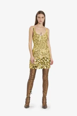 Ermanno Scervino propone la sottoveste di paillettes color oro o argento.