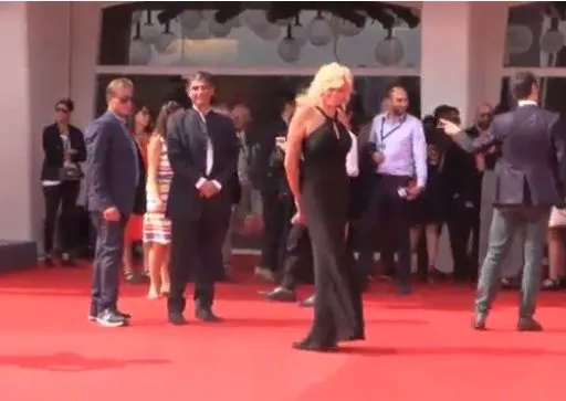 Anna D'Acquisto è una postina palermitana che ha partecipato al del docu-film «Happy Winter» di Giovanni Todaro presentato, fuori concorso, al 74 Festival del cinema di Venezia. L'affascinante e simpatica postina che ha sfilato con disinvoltura sul red carpet come una vera diva, ha confessato di aver pagato, l'elegante abito nero indossato per l'occasione, 35 Euro. Foto Facebook