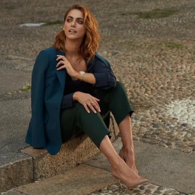 Ha poi raccontato di aver scelto per le danze un abito romantico ispirato a Ginger Rogers. Sui capelli invece lezioso dettaglio: “Abbiamo sciolto i capelli raccogliendoli solo da una parte con un pettinino … e accussì”.