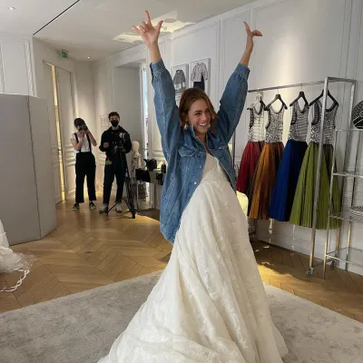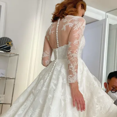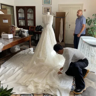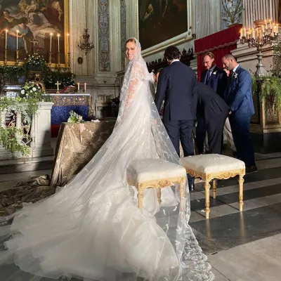 “Parigi, lunedì 30 luglio… la prova ufficiale del mio abito da sposa , l'ultima prima di indossarlo in chiesa l'altro ieri … che momento indimenticabile… desideravo che il mio abito avesse il velo e che il motivo del ricamo essere le spighe di grano, bellissimo simbolo, lo sognavo e disegnavo nella mia testa fantasticando … grazie di cuore @mariagraziachiuri @mathildefavier e tutto il team di @dior che ha lavorato alla creazione di questa meravigliosa opera d'artigianato e amore… l'abito è tutto ricamato a mano e la gonna di organza si muove con una leggerezza che desideravo fosse la base del mio abito … colei che scatta la foto è @clascutti che voglio ringraziare per avermi aiutato in tutto e per tutto, per essere stata al mio fianco non solo nello styling, ma nella vita,mano nella mano… lei è di quelle persone che se le incontrate nella vita sono il bene più prezioso: non vi sfrutteranno mai e vi staranno accanto senza che voi dobbiate chiedere … si chiamano amici, sono pochi e sono stupendi … grazie di cuore”.