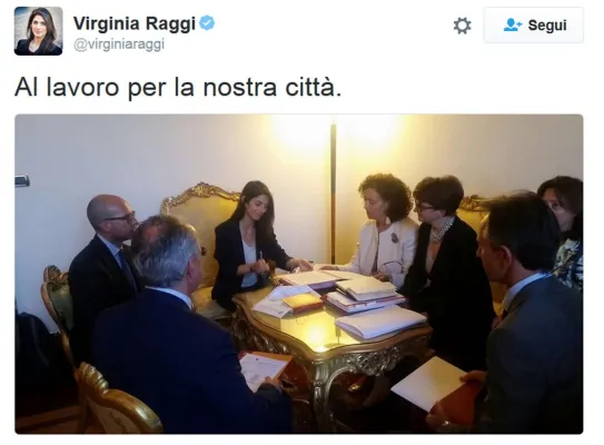 Da oggi il Campidoglio è 5 Stelle. Virginia Raggi, neoeletta sindaco di Roma, si è insediata a Palazzo Senatorio. Con qualche lacrima versata affacciandosi dal balcone con vista Fori imperiali e tanto di diretta Facebook all'insegna della trasparenza cavallo di battaglia del M5s. "La giunta la annuncerò il 7 luglio" dice la pentastellata. Tra le sue priorità la riorganizzazione della giungla partecipate, in particolare Ama e Atac, con tanto di richiesta di pagelle per i cda. E sul dibattito 'sindaco-sindaca' cita l'Accademia della Crusca e taglia corto: "Chiamatemi Virginia". Èstato un arrivo 'green' sul colle capitolino a bordo di una miniauto elettrica, sulla falsariga del suo predecessore - Ignazio Marino aveva pedalato in sella ad una bici rossa. Prima di entrare in Campidoglio, fascia tricolore sulla spalla, annuncia che il resto della sua giunta la presenterà durante il primo consiglio comunale che si terrà il 7 luglio