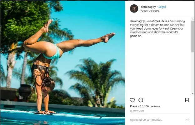 . Demi ogni giorno si sottopone ad allenamenti molto intensi e riesce a fare esercizi incredibili come testimoniano gli scatti che posta sul suo seguitissimo profilo Instagram.