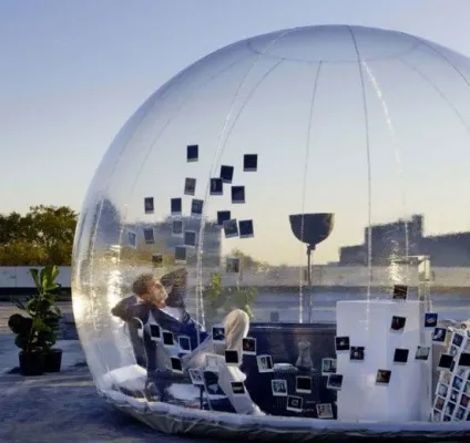 Si chiama Cristal bubble e altro non e' che una rivoluzionaria tenda che promette di riavvicinare l'uomo alla Natura. La struttura, che puo' esser utilizzata singolarmente o in combinazione con altri moduli che possono esser uniti l'uno all'altro, e' completamente trasparente (salvo la versione camera da letto che garantisce degli standard di privacy superiori) e puo' esser installata in qualsiasi luogo. Una volta montata la si potra' infatti mettere in giardino o nel bel mezzo di un bosco, di una spiaggia o su un prato di montagna. Per chi lo possiede l'incredibile opportunita' di spaparanzarsi al suo interno per guardare comodi le stelle e la natura circostante, anche quando piove. La tenda, che sarebbe meglio definire modulo abitativo, e' resistente ai raggi UV e dispone di un sistema interno per far circolare l'aria.