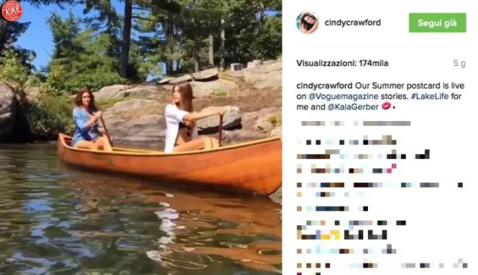 Cindy Crawford e la figlia Kaya si mantengono in forma andando in canoa.