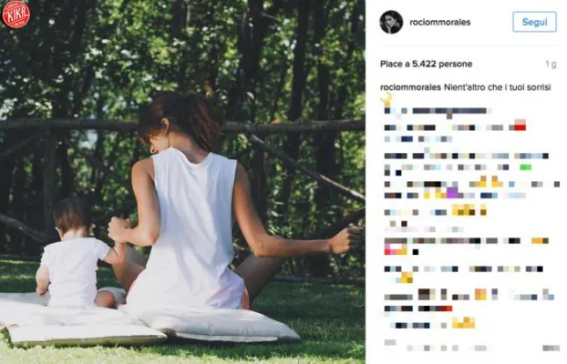 Rocio Munoz Morales si dedica allo yoga con la piccola Luna Bova.