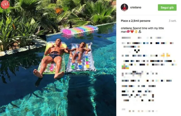 Cristiano Ronaldo si gode il meritato riposo in piscina con il figlio Cristiano Ronaldo Jr.