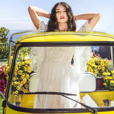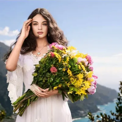 Deva Cassel, che sta seguendo le orme della madre con profitto, nello spot passeggia con il suo abito di pizzo bianco tra i vicoli di Ravello, nella Costiera Amalfitana.
