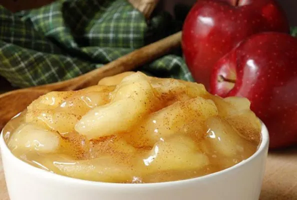 un pizzico di sale. Preparazione: Frulla le mele fino ad ottenere una purea.