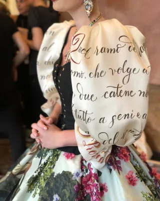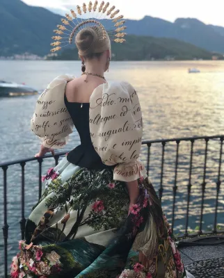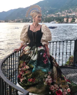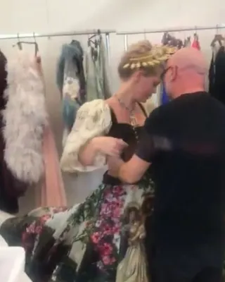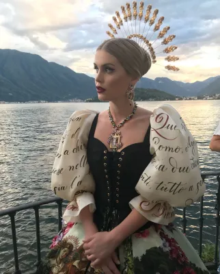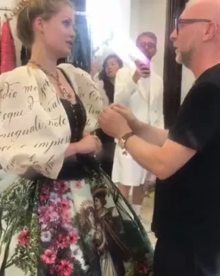 Quando ha indossato l'abito ispirato ai Promessi Sposi, la modella ha pianto: nel video, condiviso sul suo account Instagram, si vede Domenico Dolce che l'abbraccia per consolarla. Durante le prove, con Kitty c’erano proprio gli stilisti Domenico Dolce e Stefano Gabbana che la incoraggiavano e la abbracciavano mentre lei si guardava allo specchio commuovendosi di nuovo. L’abito ispirato ai Promessi Sposi di Alessandro Manzoni, porta sulla gonna immagini del romanzo e panorami del luogo.
