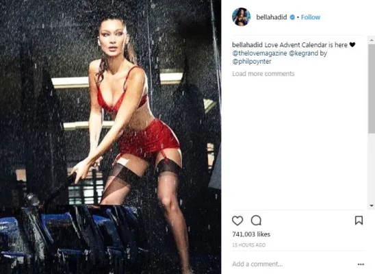 Dopo il video della sorella Gigi che si dimena sudata e sexy simulando le mosse della kick boxing e che a un certo punto svela le ascelle pelose creando un certo sconcerto nei suoi fan, ora anche Bella Hadid ci omaggia con una clip, che il magazine "Love", include nel suo incredibile e quasi blasfemo "calendario dell'avvento". Questo calendario mette insieme i filmati sexy delle modelle più famose al mondo.
