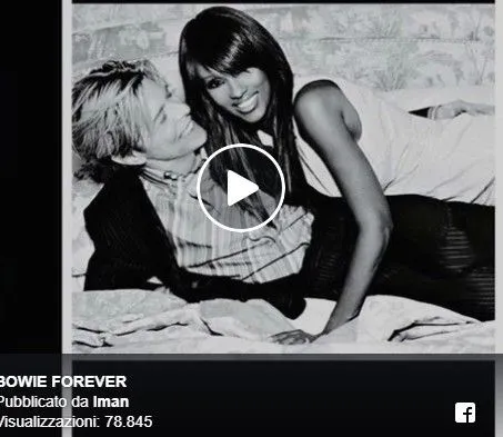 Due anni fa in questi giorni moriva David Bowie. Il Duca Bianco, al secolo David Robert Jones, era scomparso nel 2016 due giorni il suo 69esimo compleanno. "La mia storia d'amore preferita è la nostra", ha scritto su Facebook la modella Iman, postando un video con il compagno di una vita. Due anni fa esatti l'addio a David Bowie. Il Duca Bianco, al secolo David Robert Jones, è scomparso nel 2016 due giorni il suo 69esimo compleanno. Nei giorni scorsi su twitter, Iman, che è stata accanto a Bowie fino alla fine, non nasconde il dolore che ancora prova: "Sosteniamoci!", ha scritto. due si erano conosciuti nel 1990 e la storia vuole che per la rockstar fu amore a prima vista. Due anni dopo si sposarono con una cerimonia privata a Losanna in Svizzera per poi celebrare pubblicamente il matrimonio il 6 giugno del 1992 a Firenze.