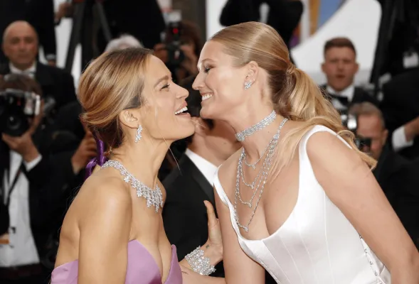 L’ultimo red carpet del festival del cinema di Cannes, ieri sera è stato allietato da un simpatico siparietto. Le due top model Petra Nemcova Toni Garrn, durante la passerella del film A Hidden Life, hanno fatto un piccolo show con la tedesca che ha dato una pacca sul sedere della ceca Petra. Le due sono poi scoppiate a ridere tra i falsh dei fotografi che hanno immortalato lo scherzo.