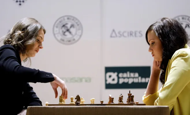 Anna, occhi azzurri e viso angelico, però, non è solo una fuoriclasse degli scacchi ma in questi anni si è fatta portavoce dei diritti delle donne ed è diventata simbolo contro le disparità di genere. Una presa di posizione che nel 2017 l’ha portata a rinunciare al mondiale in Arabia Saudita e a un montepremi da capogiro.