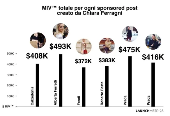 Una capacità imprenditoriale non indifferente. Dopo la Milano fashion Week è stato realizzato da Stylight un report per verificare l’impatto economico di Chiara Ferragni sui brand e sulle tendenze dello shopping di moda: analizzando il suo profilo Instagram nel corso della Milano Fashion Week i data analyst di Launchmetrics hanno calcolato il Media Impact Value (MIV™) di alcuni post sponsorizzati creati dalla Ferragni e il team data di Stylight ha analizzato i trend d’acquisto dei suoi 12 milioni di utenti mensili, evidenziandone i cambiamenti nelle ricerche, nei click e nelle vendite di specifici capi e brand proprio a seguito dei post pubblicati da Chiara.
