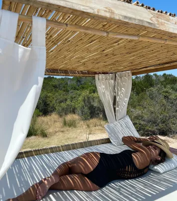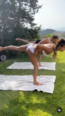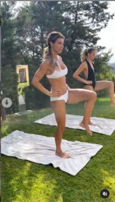 La show girl, sul prato della villa o sul catamarano tra le cristalline acque della sua amata Sardegna, ogni giorno si sottopone a dure sessioni di allenamento, come un'ombra la sua personal trainer di pilates la segue costantemente negli esercizi.