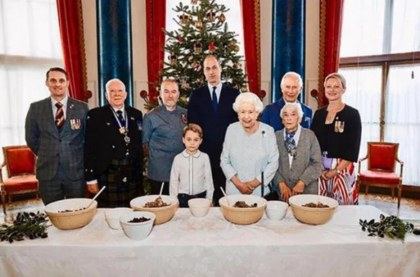 Buckingham Palace ha pubblicato una foto delle vacanze che mostra la regina mentre prepara i dolci natalizi con suo figlio, il principe Carlo, il nipote William e il piccolo George, rispettivamente, il primo, il secondo e il terzo erede in linea per il trono britannico.