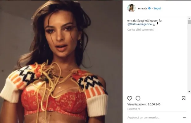 In una bellissima foto postata su Instagram, la top model ha reso noto ai suoi fan quale fosse la sua scelta per la notte di capodanno: nero pizzo a svelare, più coprire, le sue generose forme. Per Natale la Ratajkowski aveva fatto scandalo con un video, pubblicato sui social, che anticipava il contenuto di un calendario che la mostra con indosso un completo di lingerie mentre si dimena su un tavolo ricoperto di spaghetti. Il video apprezzato da tanti ha scatenato, come si poteva prevedere, anche numerose polemiche ma Emily ha prontamente risposto: "Per me, la sessualità femminile e la sensualità, non importa quanto condizionate da un ideale patriarcale, possono essere incredibilmente efficaci per una donna se lei sente che le danno potere. Il modo in cui mi vesto, recito, flirto, ballo, faccio sesso: queste sono le mie decisioni e non dovrebbero essere influenzate dagli uomini. Essere sexy è divertente e mi piace. Non mi scuserò mai per questo".