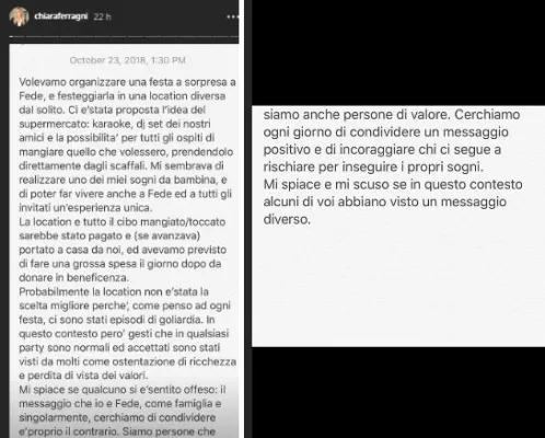 Le polemiche sono iniziate dopo la pubblicazione, fra le storie pubblicate da Fedez su Instagram, di video sulla festa di compleanno a sorpresa organizzata dalla moglie Chiara Ferragni in un supermercato milanese, per i suoi 29 anni. L'accordo era che gli invitati avrebbero potuto prendere qualsiasi cosa. Le immagini degli invitati, tra i carrelli pieni di cibo e balli tra frutta e verdura, hanno scatenato violente polemiche sui social network. Criticate la scelta del luogo e lo spreco di cibo.