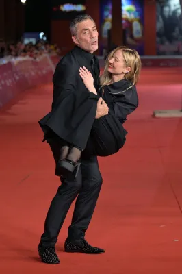 Poi ci sono Valerio Mastandrea con la compagna Chiara Martegianie che tornano per il secondo giorno consecutivo davanti ai fotografi della Festa del Cinema di Roma per il red carpet che precede la proiezione di Diabolik chi sei?