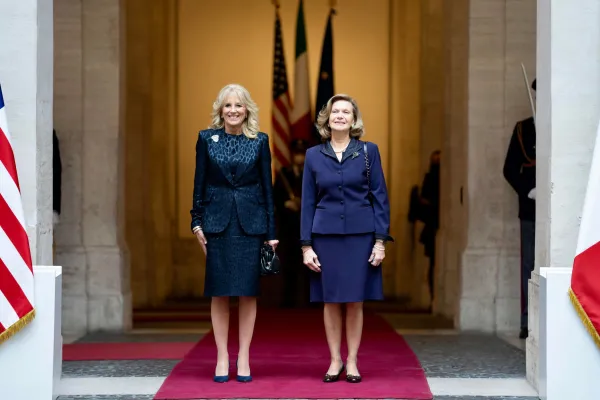 Jill Biden è apparsa fra le più colorate con il suo abito a grandi fiori. La first Lady americana è rimasta entusiasta della galleria Borghese: tra le opere che ha più ammirato, nella visita delle dieci first lady e dei due first gentlemen del G20 sotto la guida della direttrice Francesca Cappelletti, ci sono la statua di Antonio Canova 'Paolina Borghese come Venere vincitrice', alcune statue del Bernini e il quadro 'Il Fanciullo con canestra di frutta' di Caravaggio. Lo riferisce il pool di giornalisti al seguito.