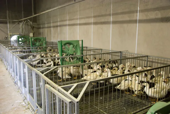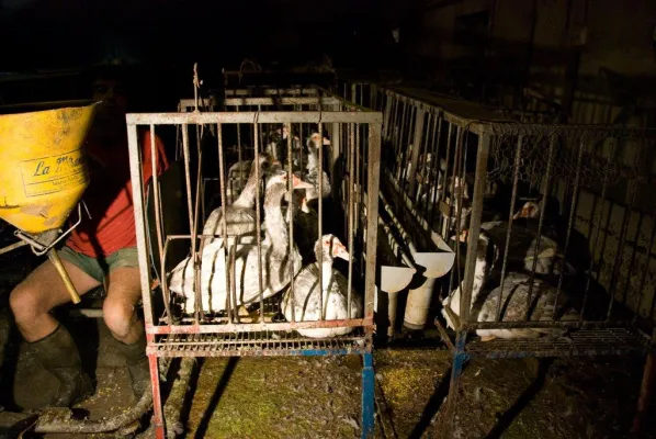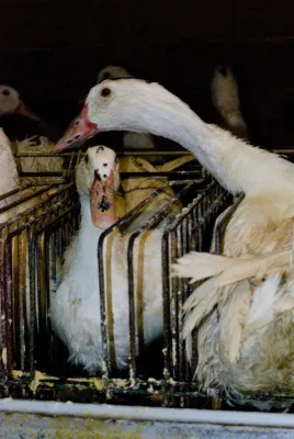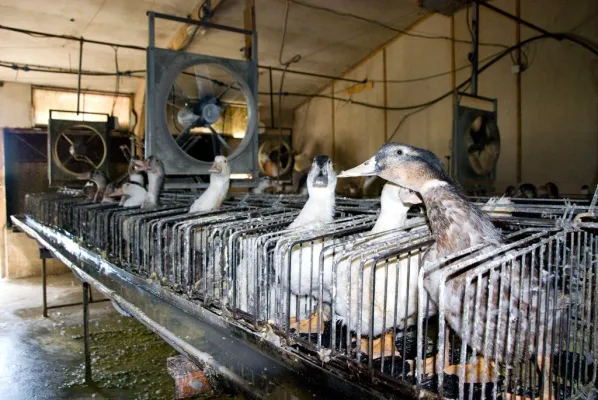 L’uso delle gabbie è una costante negli allevamenti che producono foie gras.