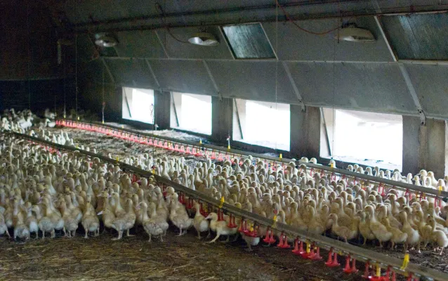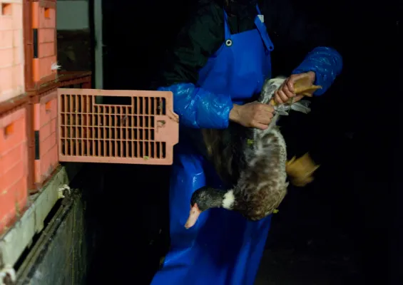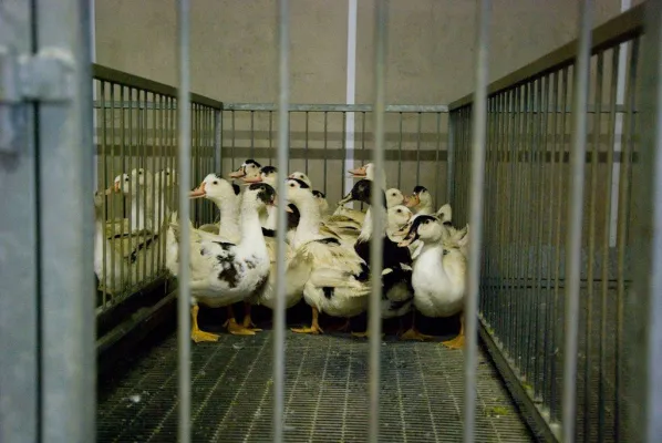 Negli allevamenti gli animali vengono in un primo momento allevati a terra dentro un capannone e spostati per circa 2 mesi in recinti all’esterno quando il piumaggio diventa “più consistente”, “l’unica immagine” denuncia Essere Animali “che l’industria del foie gras vorrebbe mostrare”.