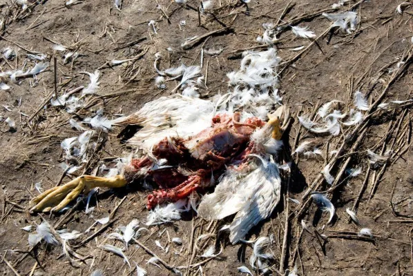 Animale spiumato in un mattatoio. Courtesy Essere Animali