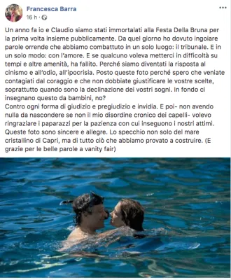 Qualche ora dopo Francesca ha pubblicato un lungo post su Facebook dove spiegava l’accaduto e soprattutto dove invitava le persone e in particolare le donne a reagire agli insulti con un post scriptum significativo: “La violenza sulle donne inizia da quella verbale”. Poi ha spiegato: “Mi dispiace molto per quello che è successo ieri sera. Mi dispiace aver dovuto confessare uno stato intimo anche se non era un segreto per i più. Avrei voluto farlo con il sorriso e nei tempi e nei modi che noi avremmo reputato giusti.