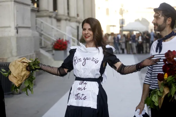 "Quando è venuto ospite a Splendida cornice, ho provato a sedurlo artisticamente dando vita a una cena pseudovirtuale nello studio. Ma lui aveva già chiuso il cast, e avrebbe dovuto iniziare a girare dopo un mese e mezzo. La vita, però, è strana e beffarda: dopo tre settimane ha squillato il telefono, era lui, e io sono diventata Fausta, una donna coraggiosa, parte di un gruppo di sarte alle prese col lavoro e con la vita, negli anni ’70. Non avrei mai immaginato di lavorare con lui così a breve termine, né di vedermi bionda. Se hai la fortuna di trovare le persone giuste sul lavoro, sai già che renderanno le tue giornate, e quindi la tua vita, più gentile"