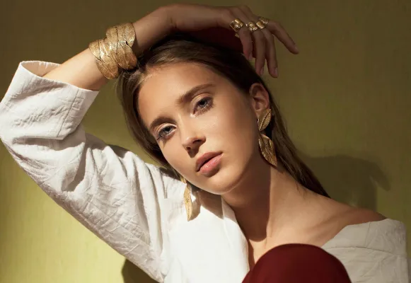 Se le giornate sono più buie e uggiose, date luce al vostro viso con una collana in bronzo o in oro, come una ghirlanda che riflette la sua luce su di voi.