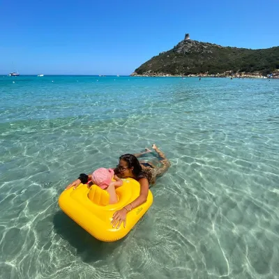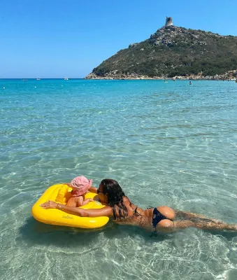 Tutta la famiglia sta passando delle splendide giornate di sole sulle paradisiache spiagge di Cala Sinzias, nei pressi di Villasimius, dove si trova la villa di famiglia dell'ex velina.